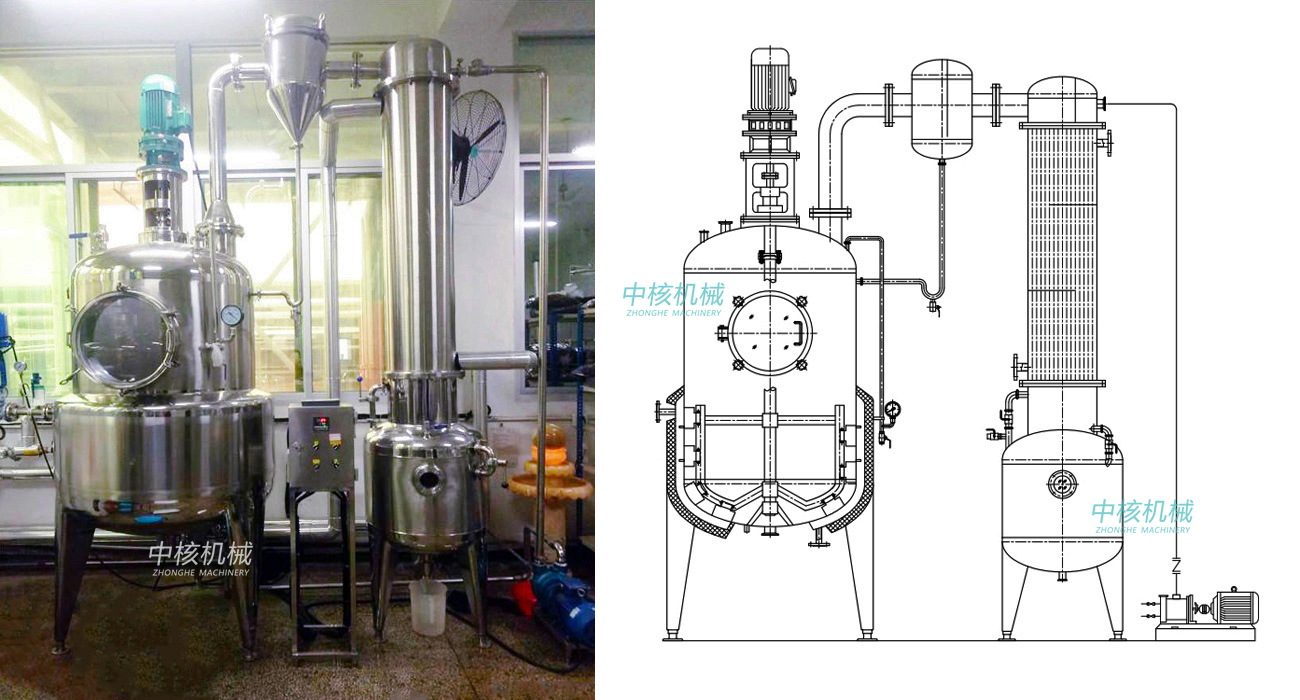 刮板濃縮罐常用于醇提液、醇沉液等物料的蒸發(fā)濃縮及多種物料的熱敏性低溫濃縮,具有時(shí)間短速度快的特點(diǎn),可一機(jī)多用,進(jìn)行常壓、減壓濃縮、收膏等操作。