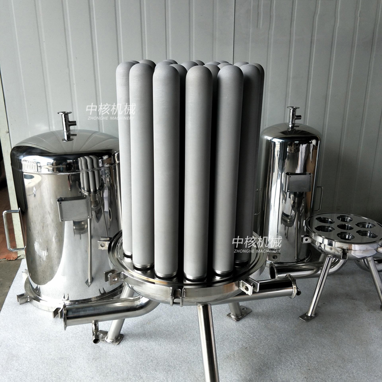 鈦棒過濾器使用的是鈦棒濾芯。此濾芯是采用粉末冶金技術(shù)將鈦金屬粉末通過高溫?zé)Y(jié)制成的空心管狀濾芯,屬于深層過濾。鈦棒過濾器殼體采用304或316L不銹鋼制造,鈦濾芯具有精度高,機(jī)械強(qiáng)度高,耐高溫,耐腐蝕,無脫落,不吸附過濾物質(zhì)成分,使用壽命長,易清洗,可再生等優(yōu)點(diǎn)。